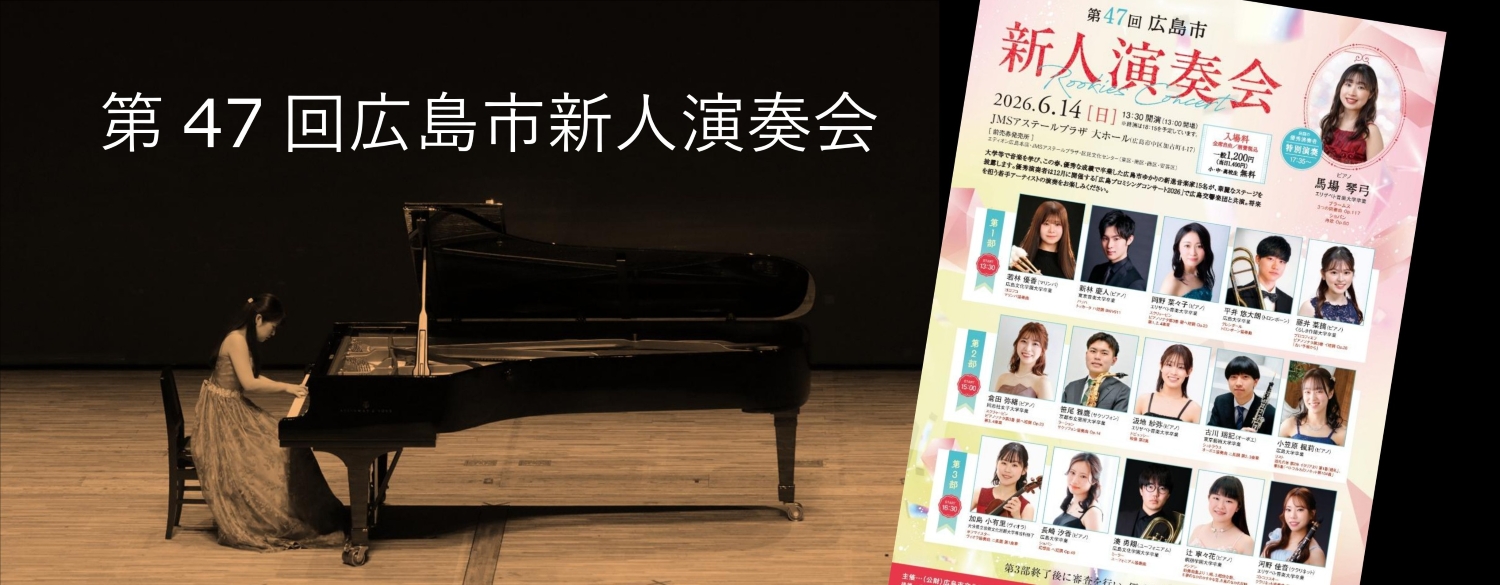 (公財)広島市文化財団では広島市ゆかりの若手音楽家たちの「新人演奏会」や日本の伝統芸能である能を子どもたちが体験できる「子ども能楽ふれあい教室」など、市民の皆さまが身近に文化芸術に触れ、参加できるイベントを主催しています。