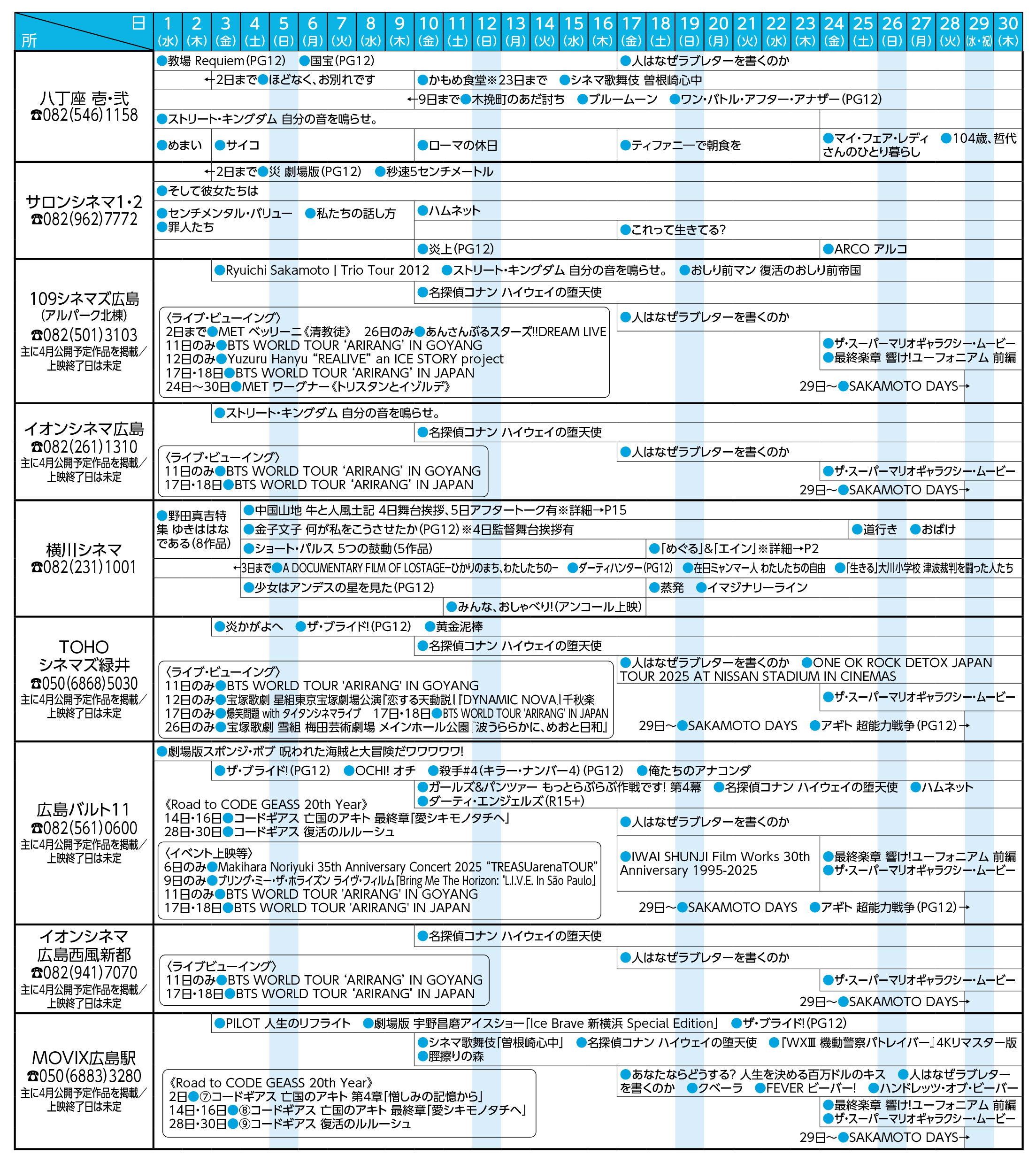 令和8(2026)年4月 映画情報 (令和8年3月16日現在)※クリックして拡大