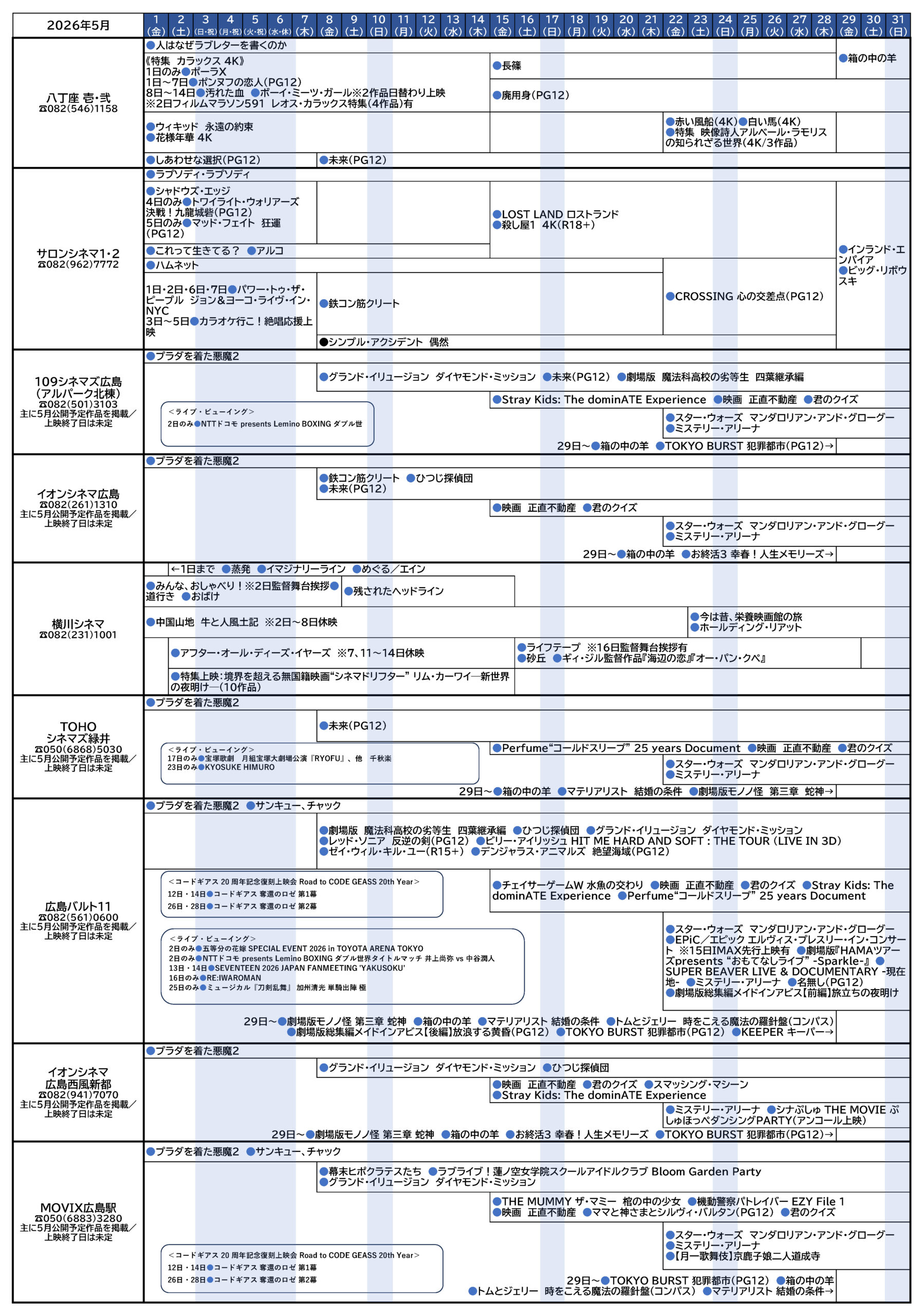 令和8(2026)年5月 映画情報 (令和8年4月20日現在)※クリックして拡大