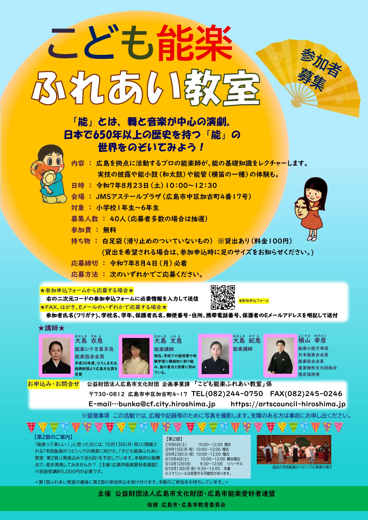 (公財)広島市文化財団企画事業課「こども能楽ふれあい教室」係