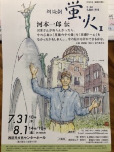被爆80年にあたり、9歳から81歳まで120名を超える市民:小学生・中学生・高校生・大学生・社会人(被爆四世の小学5年生や80代の被爆者もおられます)が、「核兵器のない平和な世界」の実現を願い、広く世界に訴えるため、朗読・合唱・音楽・挿絵・衣装・ダンス・制作など様々な形で、プロ・アマの垣根を超えて参加・上演する市民創作劇。