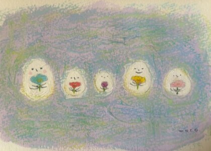絵本の挿絵のような優しく柔らかな雰囲気の作品が特徴です。