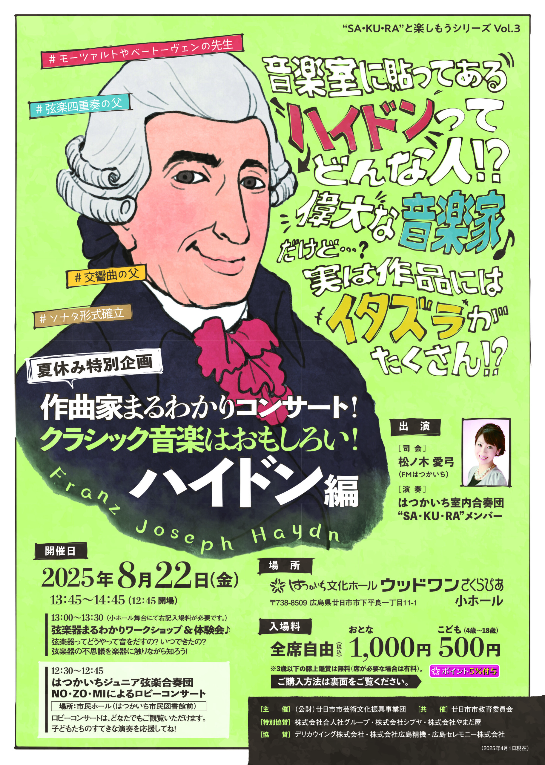 “SA・KU・RA”と楽しもうシリーズVol.3 夏休み特別企画 作曲家まるわかりコンサート!クラシック音楽はおもしろい!ハイドン編