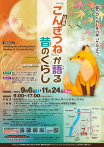 幅広い世代に愛される新見南吉の代表作・童話『ごんぎつね』のストーリーを交えながら、物語に登場する昔の道具や情景・人々の暮らしの様子を紹介します。土日祝(11/3を除く)は限定プレゼントがもらえるクイズイベントを開催。
