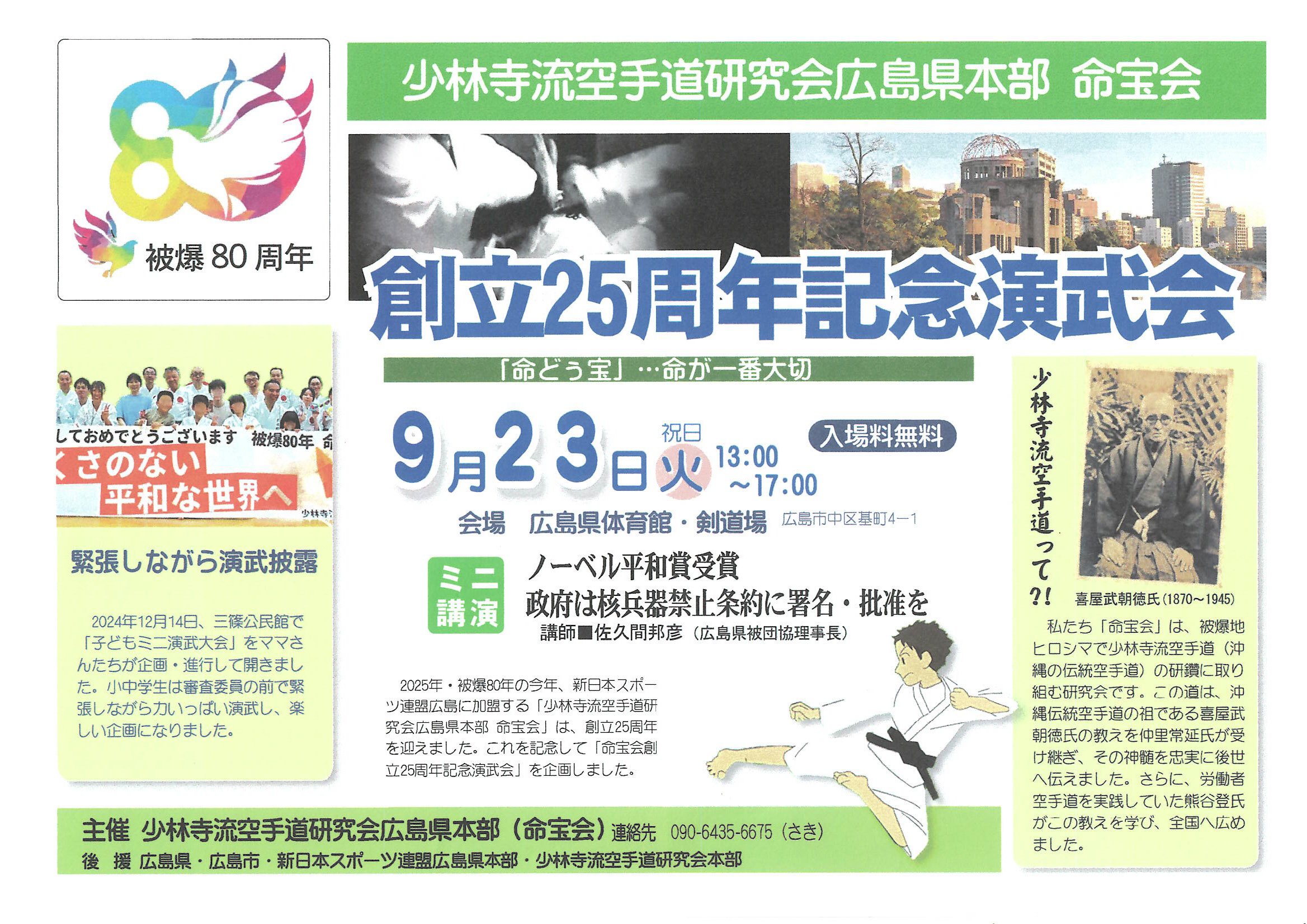 少林寺流空手道研究会広島県本部命宝会創立25周年記念演武会