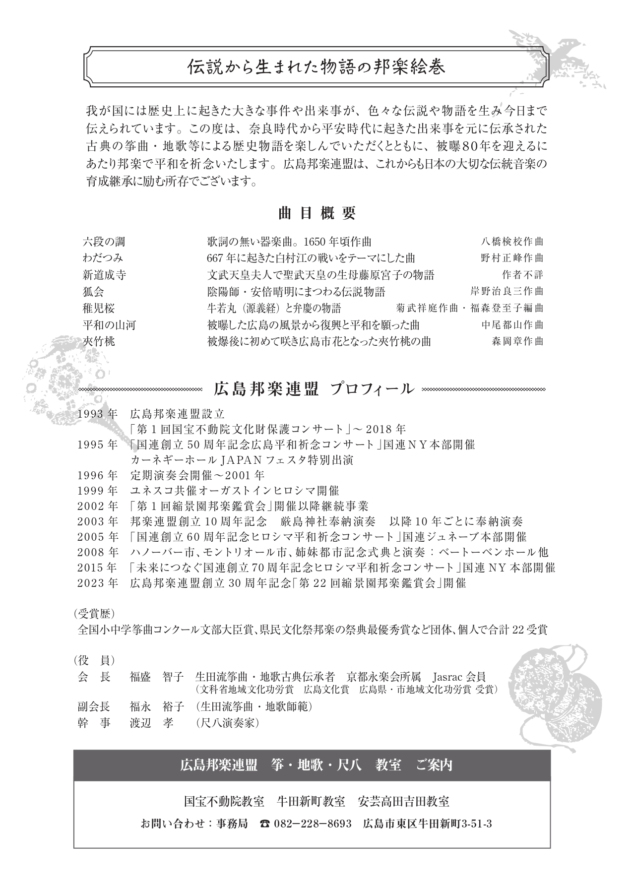 広島邦楽連盟 第24回縮景園邦楽鑑賞会~伝説から生まれた物語の邦楽絵巻~