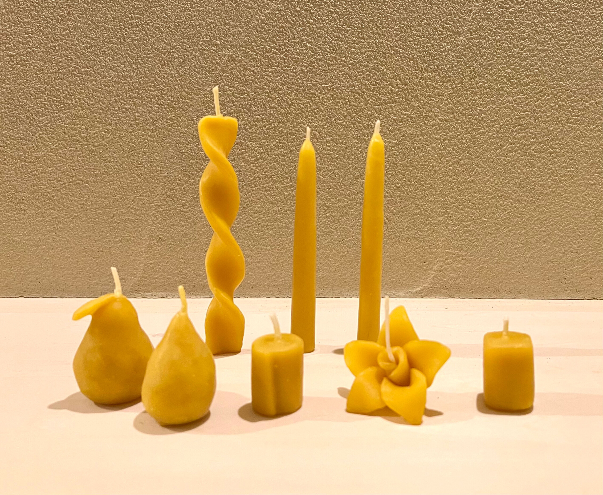 「339」POPUP企画「えかきとあかり —ほっこりてらそう、私たちの愛しい世界—」の関連ワークショップ。広島産の蜜蝋を使ったキャンドルを作るワークショップ。蜜蝋でできたキャンドルシートを丸めて作るキャンドルや、手でこねて自由に形を作るキャンドルなど、さまざまな方法でオリジナルキャンドルを制作します!(ひとり5 〜7 個程度)