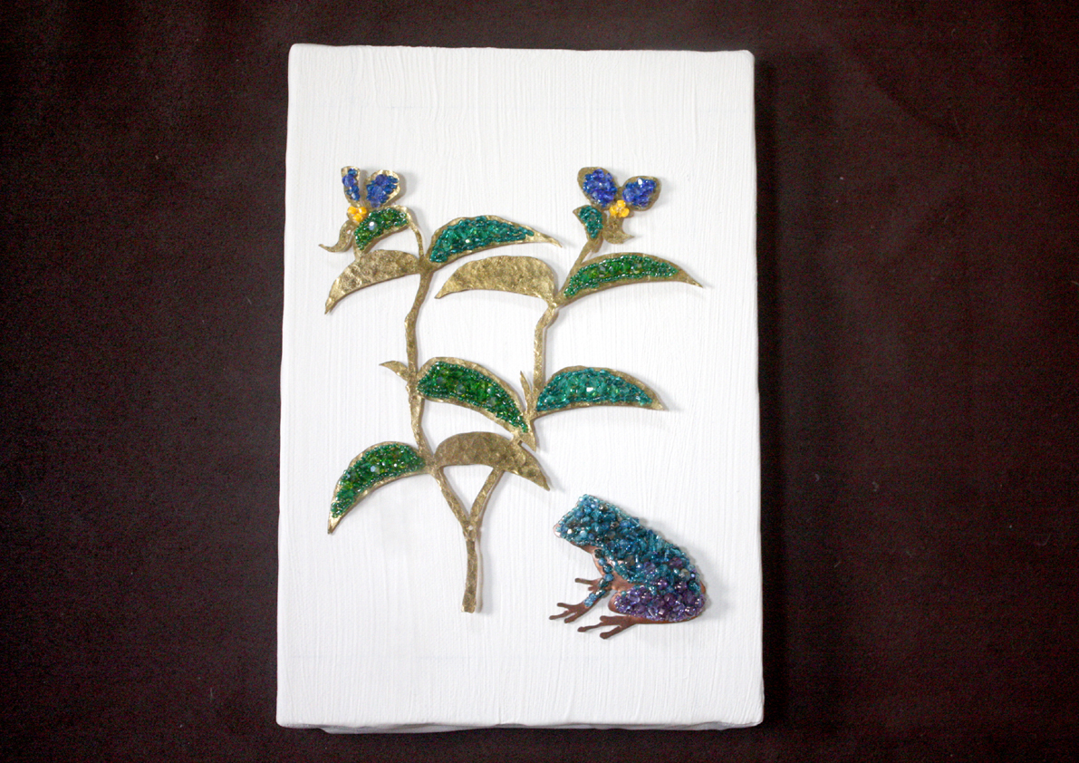 真鍮や銅といった金属とガラスビーズで、花や動物たちの絵を描くように作った作品を展示します。大きなものは壁飾り、小さなものはアクセサリーとして日々を飾れる物たちです。garallery718で4回目となる個展です。