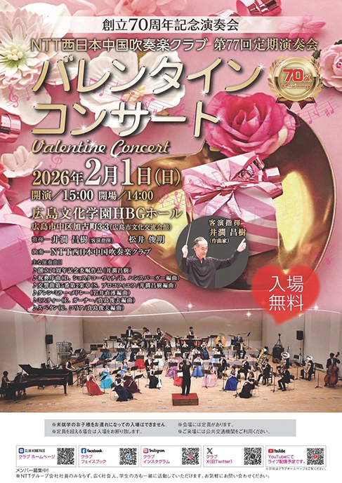 創立70周年記念演奏会 NTT西日本中国吹奏楽クラブ 第77回定期演奏会 バレンタインコンサート