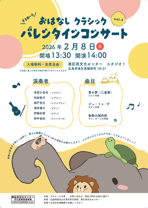 動物が登場する楽しいお話と、愛する動物たちにまつわる音楽を♪