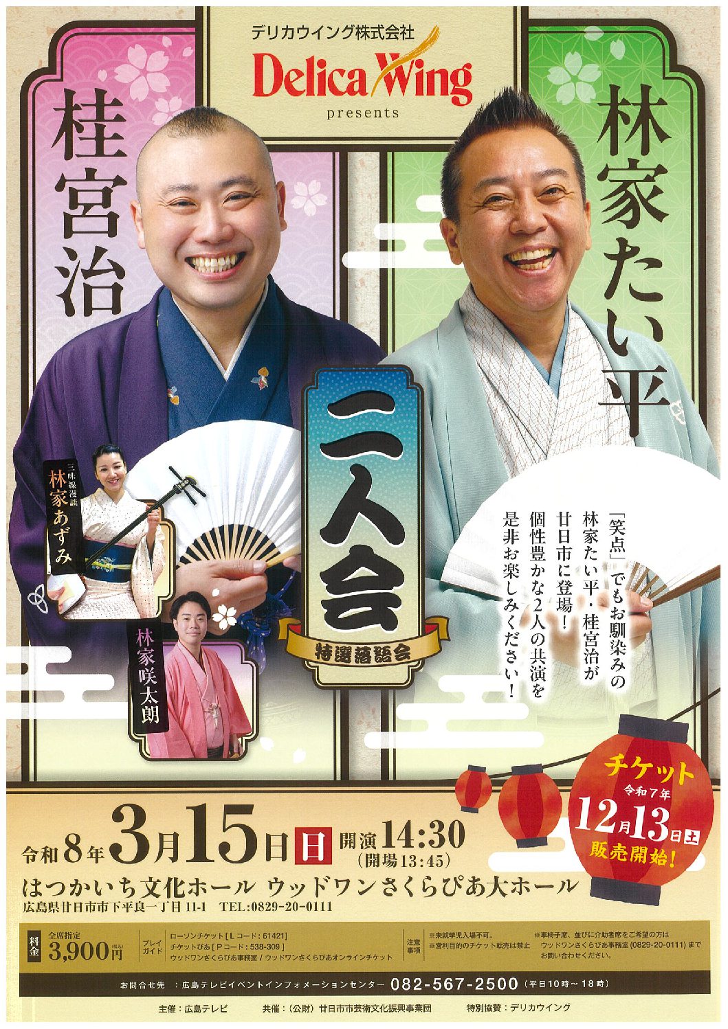 「笑点」でもお馴染みの林家たい平・桂宮治が廿日市に登場!