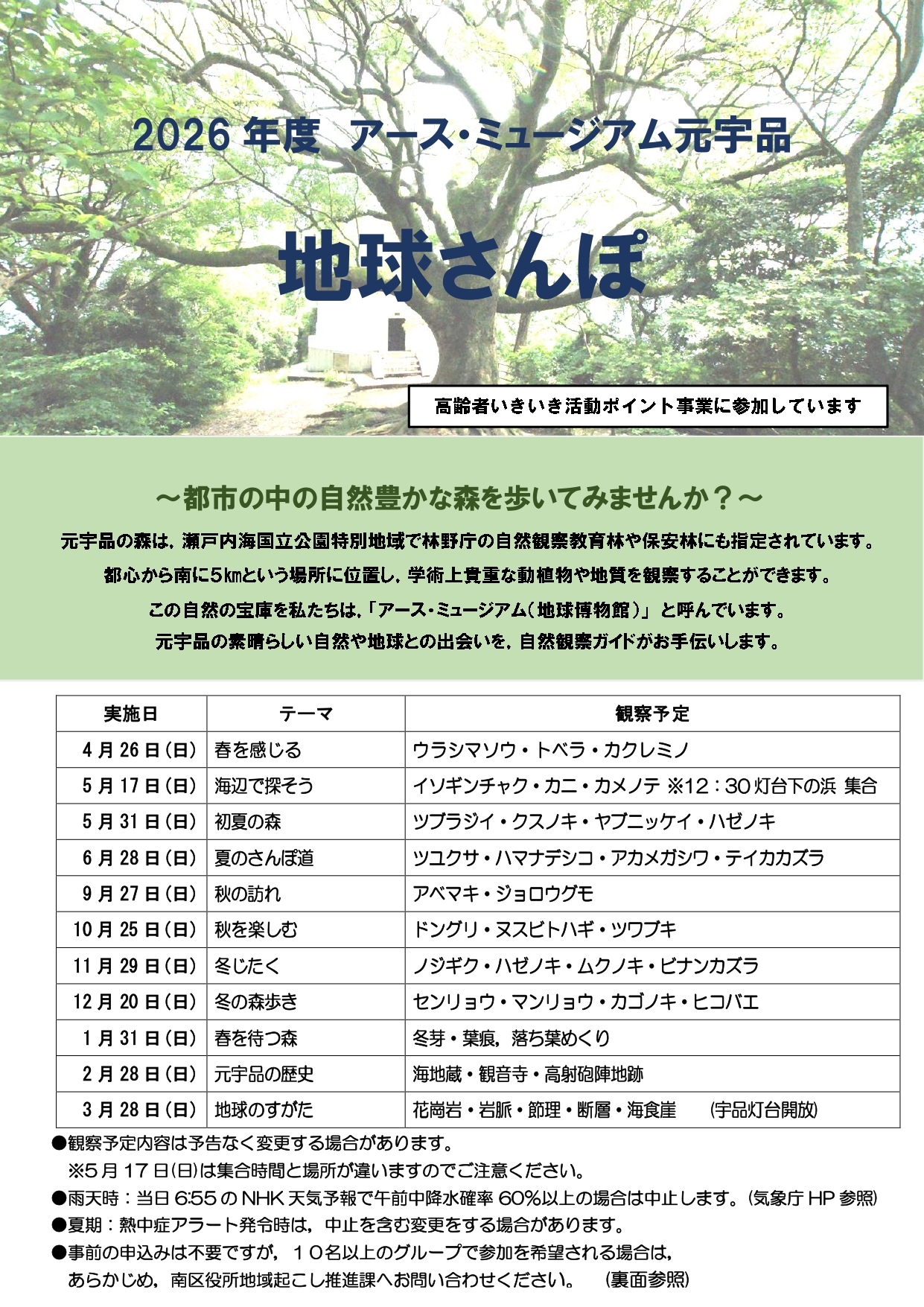 2026年度 アース・ミュージアム元宇品 地球さんぽ「春を感じる」
