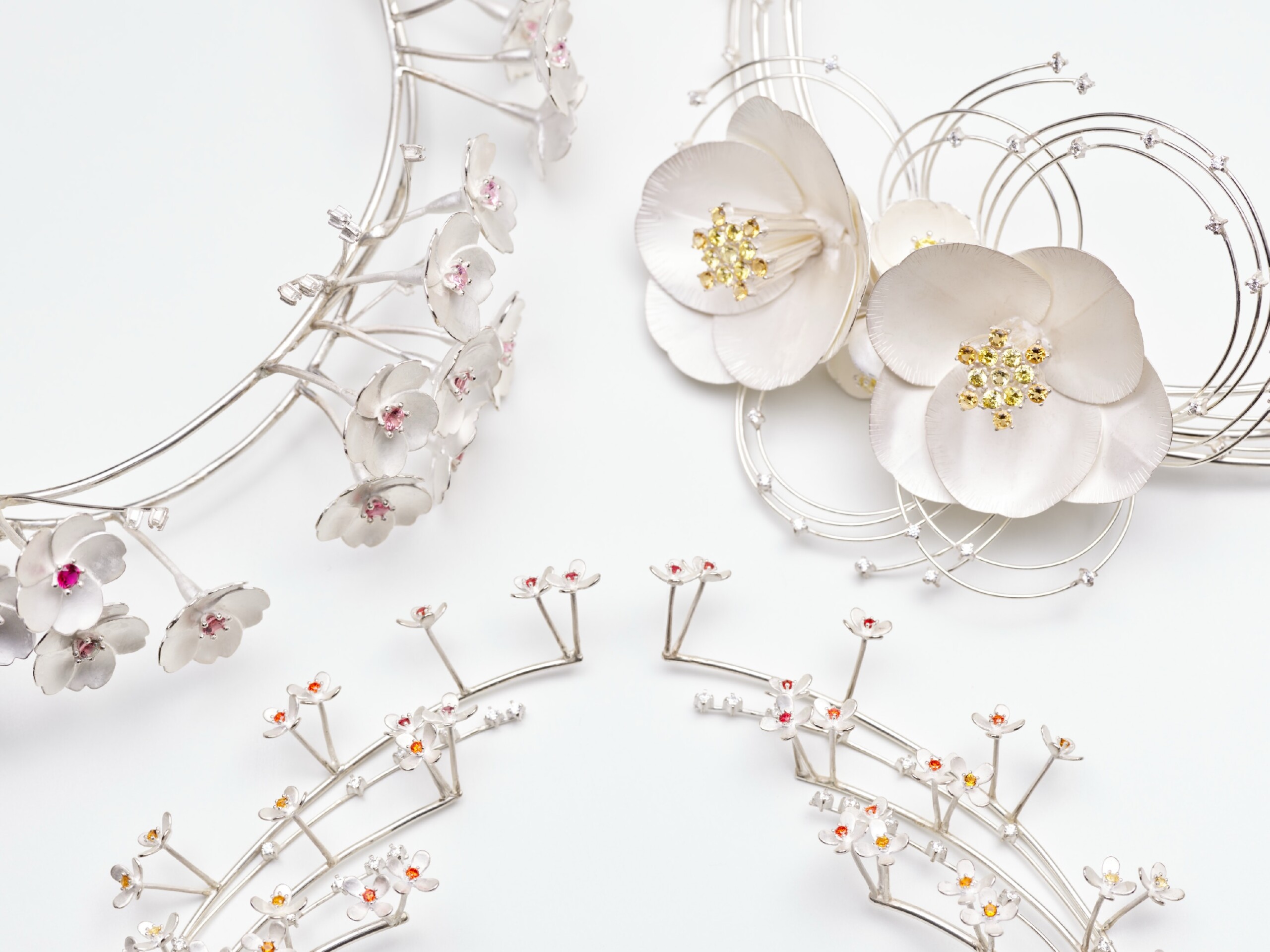 2025年度の卒業制作買上作品として、遠くの高速道路の先に故郷を想う日本画「わかれの夜」、複数の人物像から広がりを感じさせる油絵「模様」、青い羽根が美しい二羽の燕の彫刻「旅路」、多層的に映像を投影した幽霊の物語、メディア造形の「雨越し」、“永遠の輝き”を桜、金木犀、椿のジュエリーに託した金属造形「eternally」を展示します。ぜひご高覧ください。