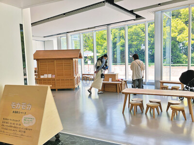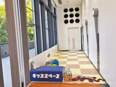 エントランスの一角にはこどもが楽しめるワークショップなどを開催する多目的スペース「モカモカ」があり、平日は開放されています。親子で時間を気にせずゆっくりと外の景色を眺めたり塗り絵をしたりして楽しむことができます。