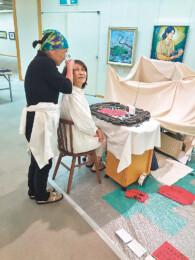 演劇イベントで知り合った村岡さんと森生さんの2人が7年前に立ち上げた演劇グループ。朗読や美術展会場でのパフォーマンスが主な活動で、月2回の練習(不定期)ではオリジナルの詩の朗読、歌やパントマイムの練習、舞台に使う模型の制作や「きりえ」を応用した色彩の勉強を地道に行っています。7月の広島平和美術展では、基地でのパーティーの夜に起きたある事件を朗読、インスタレーションで再現。ぜひご覧ください。